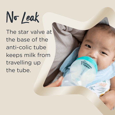 This is no ordinary bottle. Tommee Tippee Advanced Anti-Colic bottles works a little differently from regular bottles to help combat colic while ensuring a comfortable feeding experience for you and your baby. The unique 3-piece anti-colic venting system draws air away from milk and the star valve keeps milk from traveling up the tube meaning less gas, reflux and discomfort – 84% of moms who used our anti-colic bottles agreed they reduced their baby’s colic symptoms.*