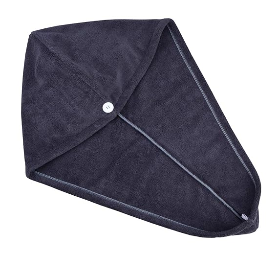 - EASY USING: The shape of this triangular hat is more convenient to use than ordinary towels and is less prone to slipping off. After a bath or shower slip over hair and twist into a turban as you would a normal towel, hook the loop over the button to lock into position. Apply make-up and get dressed all while saving time drying your hair.