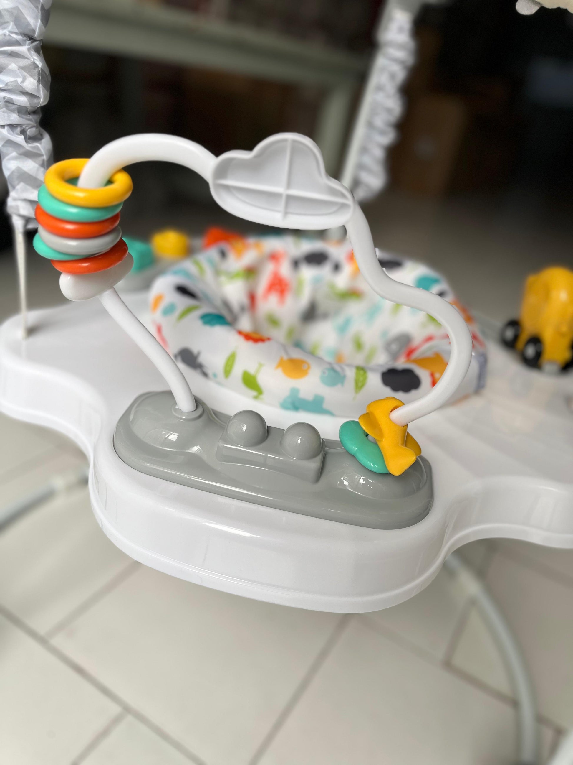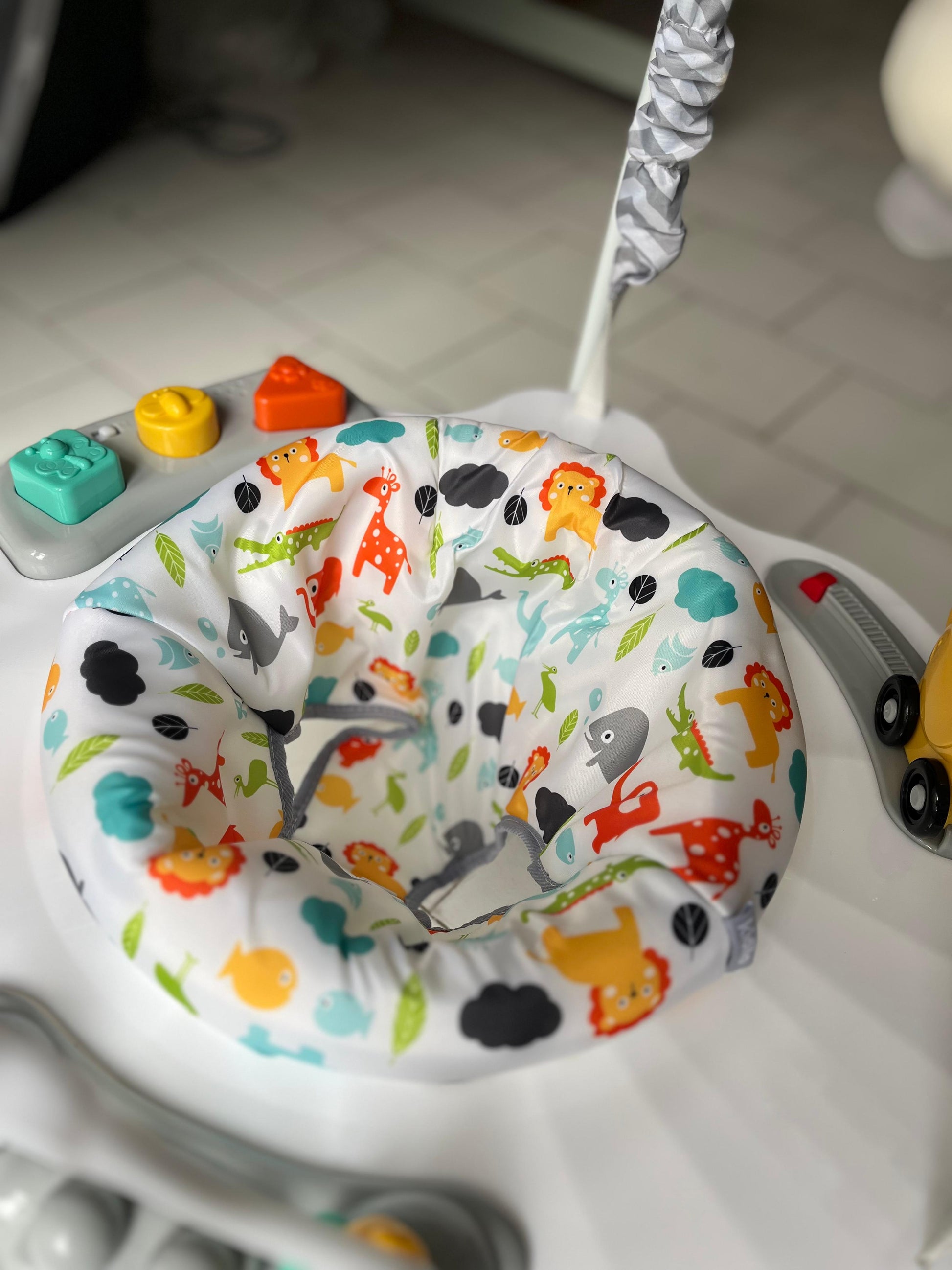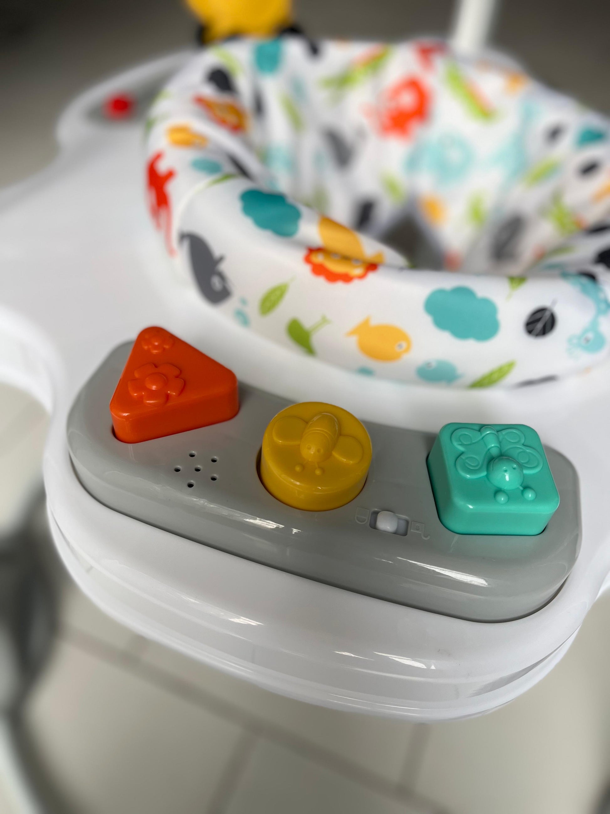 Safety is our top priority, which is why the JumpAround is equipped with a safety pad covering the springs to prevent pinches and bumps. The non-slip rubber feet ensure stability and prevent the bouncer from sliding during use, giving parents peace of mind while their child plays.