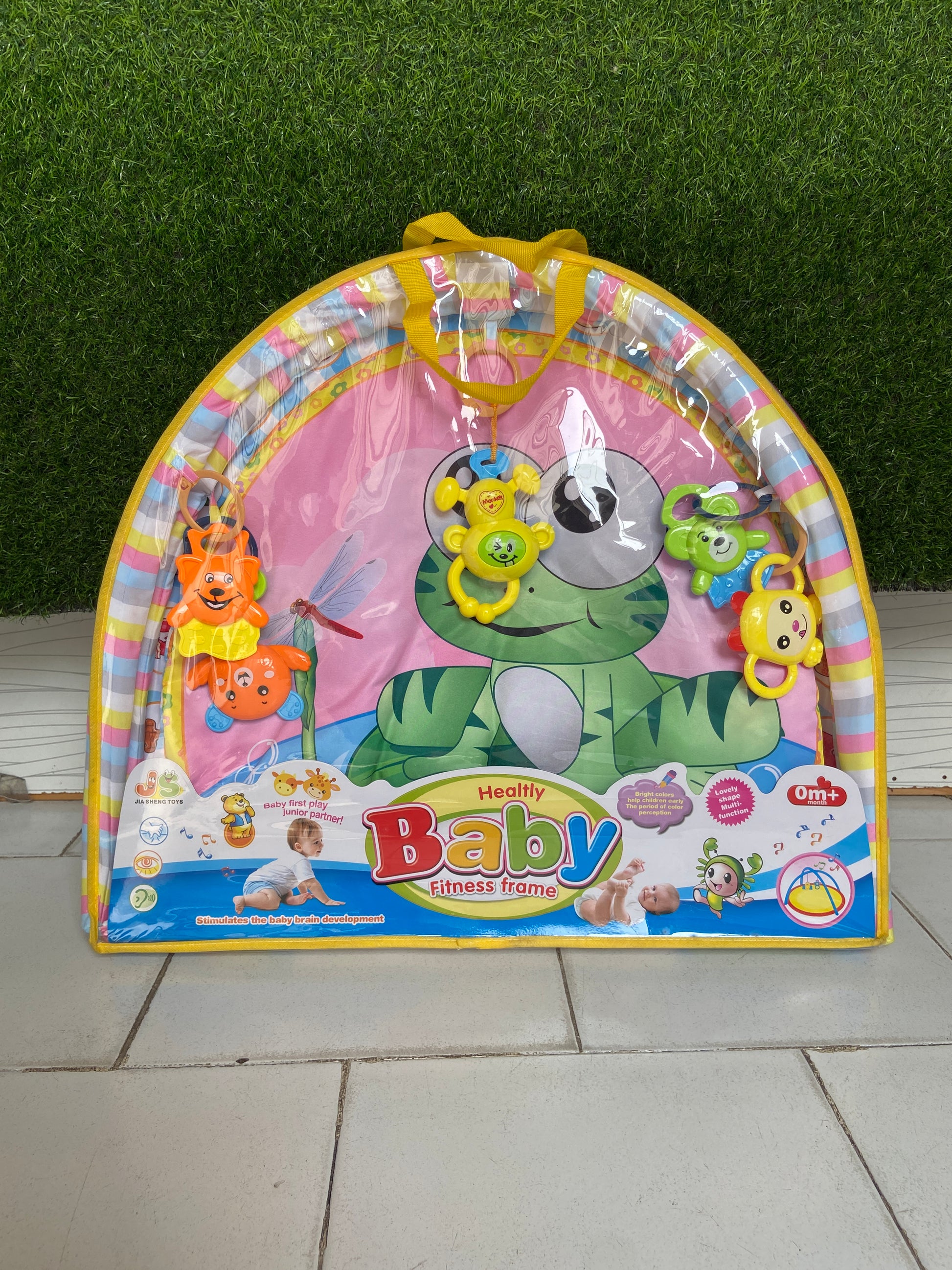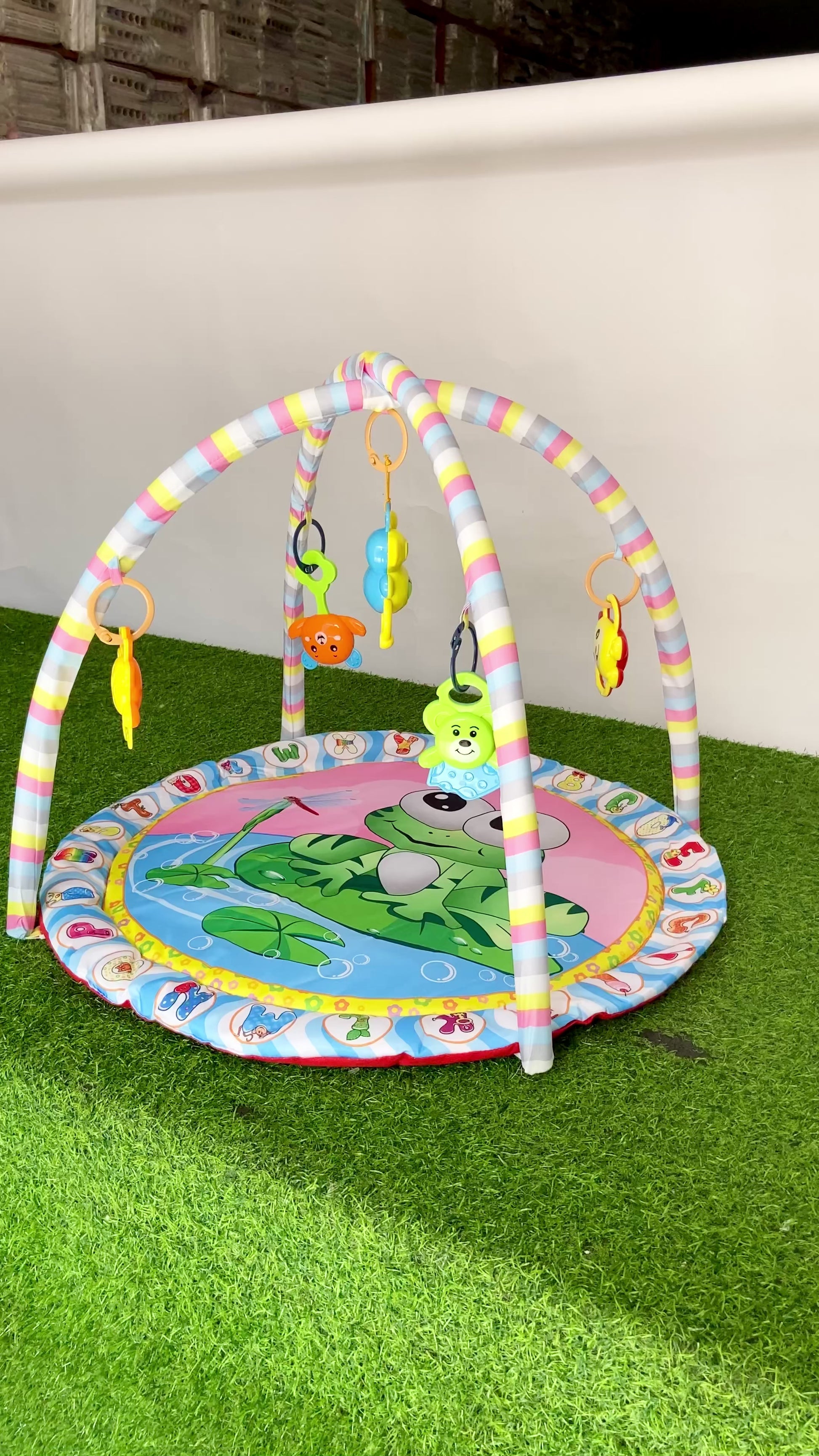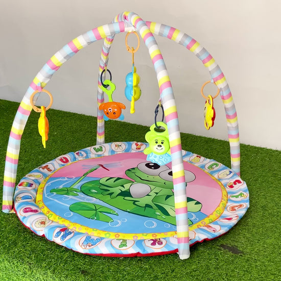 Baby Play Gym with colorful frog-themed play mat